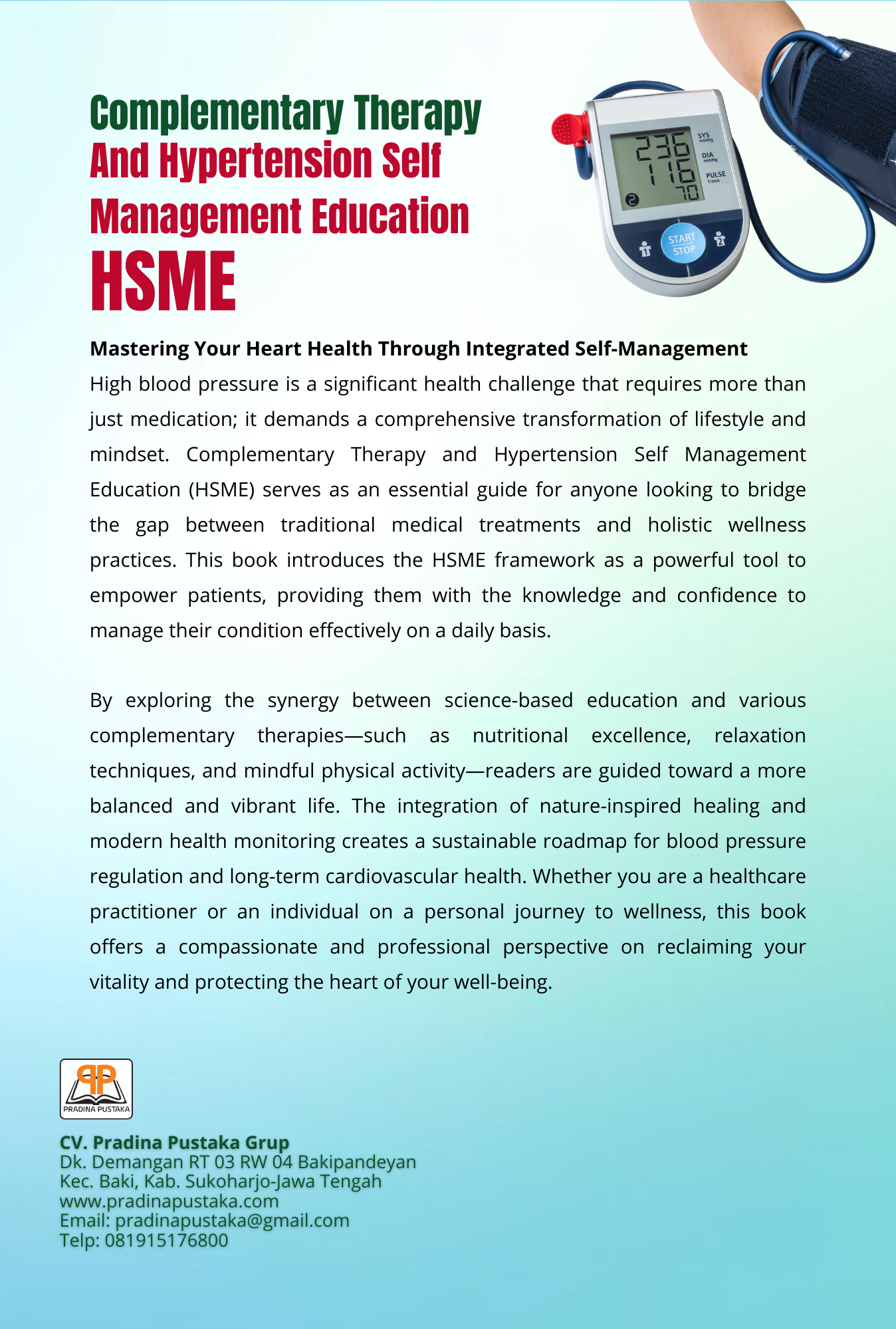 High blood pressure is a significant health challenge that requires more than just medication; it demands a comprehensive transformation of lifestyle and mindset. Complementary Therapy and Hypertension Self Management Education (HSME) serves as an essential guide for anyone looking to bridge the gap between traditional medical treatments and holistic wellness practices. This book introduces the HSME framework as a powerful tool to empower patients, providing them with the knowledge and confidence to manage their condition effectively on a daily basis.